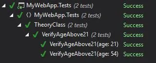 As you can see, this test was actually a set of 2 tests: one with age == 21 and another with age == 54. And they all passed.